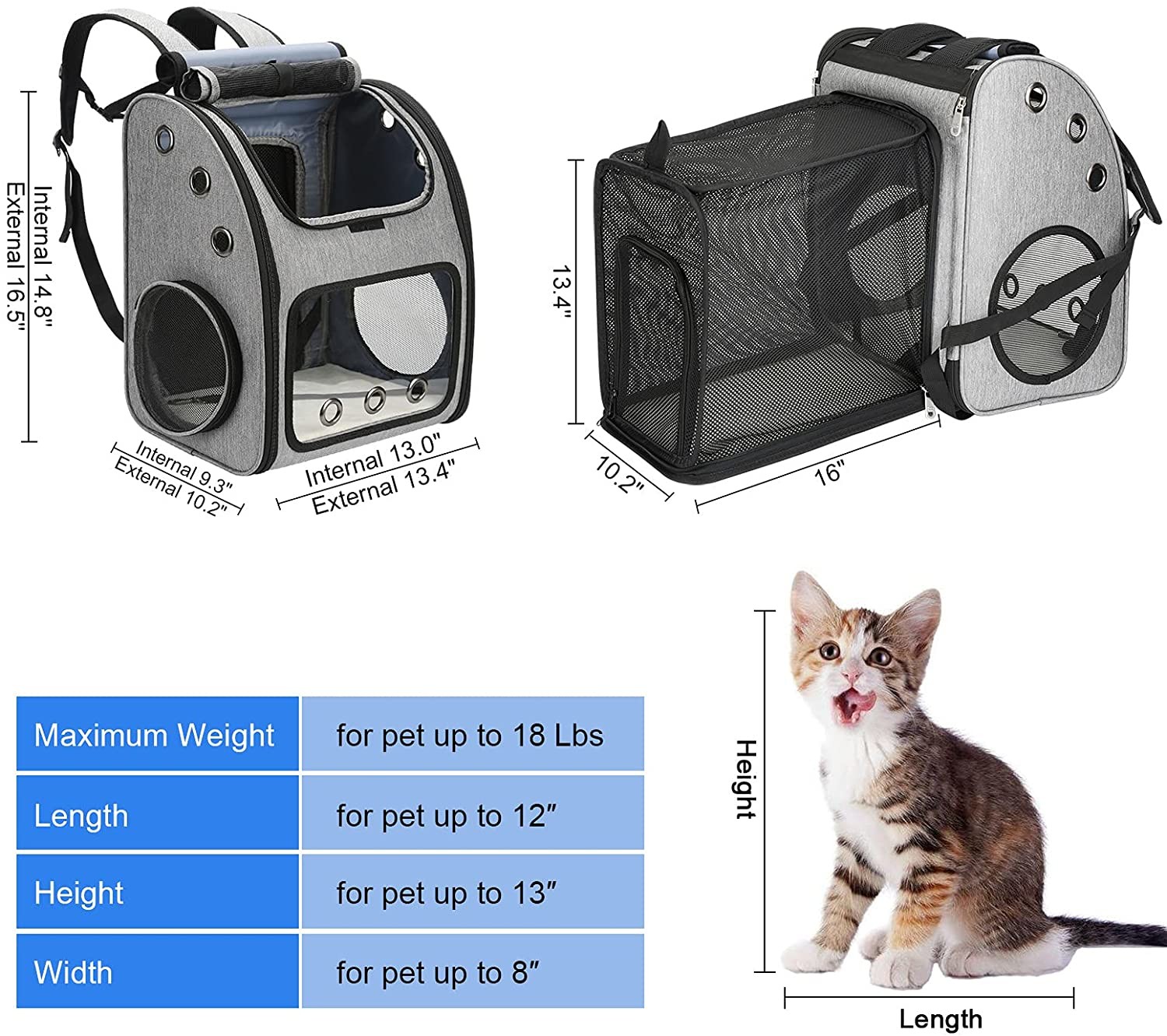 Sac à dos expansible de transporteur d'animal familier pour les chats, les chiens et les petits animaux, idéal portatif de transporteur de voyage d'animal familier pour voyager/augmentant