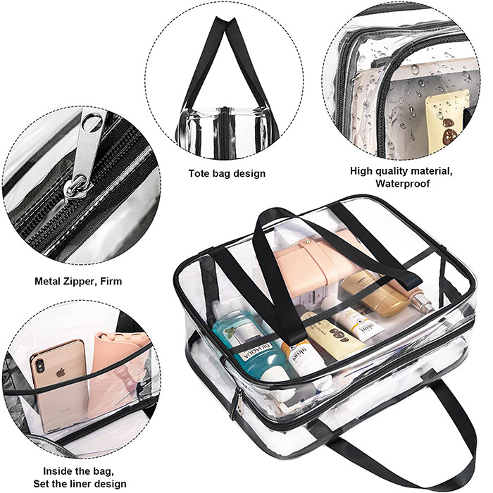 Les cosmétiques clairs mettent en sac sac transparent de plage Zippered par PVC de sac d'épaule de couche-culotte de sac de Carry Pouch Waterproof Makeup Artist d'article de toilette de Tote Bag Thick le grand