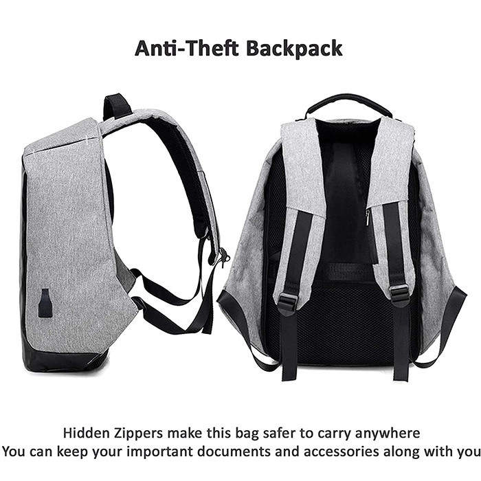 Sac à dos anti-vol d'affaires avec le port de remplissage d'USB/le sac à dos d'ordinateur portable/résistant à l'eau légers pour l'étudiant, les hommes et les femmes - gris